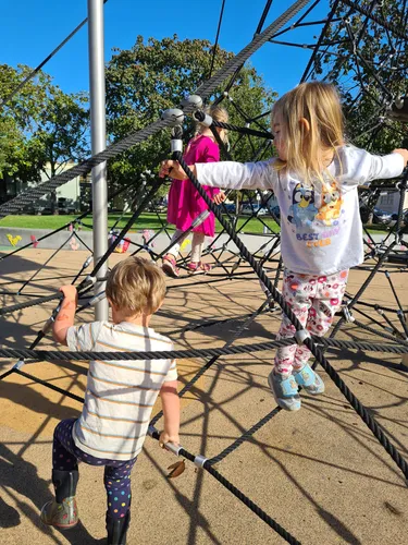 For the bigger kids (or the young at heart), there's a separate playground featuring an impressive rope climbing structure and an eye-catching green web slide that never fails to delight. The swings are large enough for adults too - a nice touch for parents who want to join in. Safety hasn't been overlooked either, with squishy rubber flooring cushioning any tumbles.