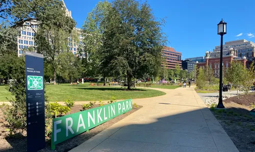 In September 2021, Franklin Park emerged from a $21 million makeover - the result of teamwork between the National Park Service, the District of Columbia government, and the DowntownDC Business Improvement District. The renovation updated this historic space, balancing modern needs with respect for its heritage. While the redesigned park has won many hearts, some longtime visitors do miss the mature shade trees that once stood tall here (the new ones are still working on their growth spurts).